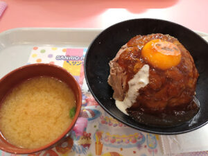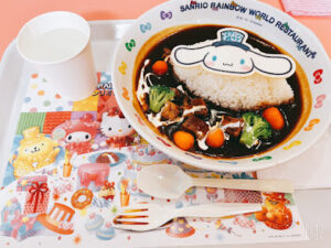 メニューも可愛くてシナモロールのビーフシチューとぐでたまのローストビーフ丼を注文しました