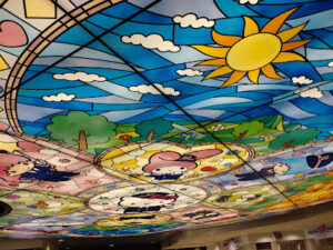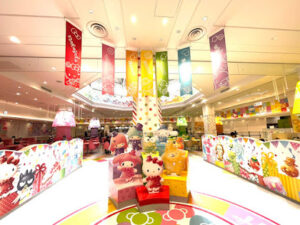 サンリオピューロランド内のフードコートの入り口にはサンリオキャラクターの可愛いモニュメントがありました♡