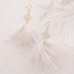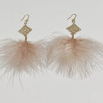 パステルカラーの羽にゴールドのパーツ、スワロフスキーを合わせて作りました